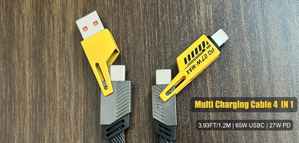 4-in-1 design for multi-device chargingPD fast charging support for quick power-upsCompatible with iPhone, iPad, Samsung, MacBook & moreDurable and tangle-free constructionPerfect for travel, office, and everyday use